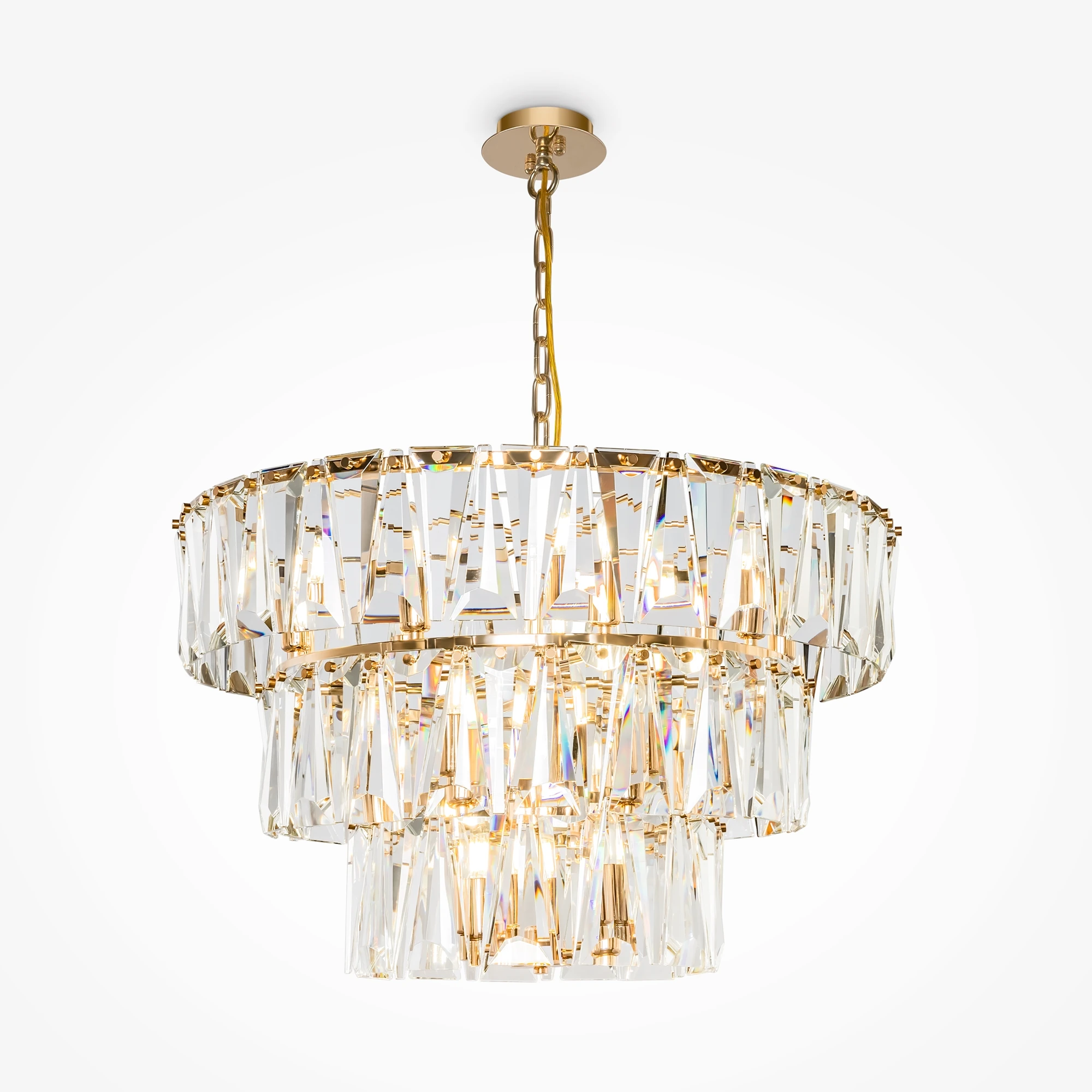 Материал арматуры – металл, оттенки – хром и золото. Декор – массивные крис таллы сложной огранки. Высота подвесных моделей регулируется длиной цепи. Источник света - лампа с цоколем Е14. | Коллекция: Modern | Серия: Puntes | Стиль: Maytoni Modern