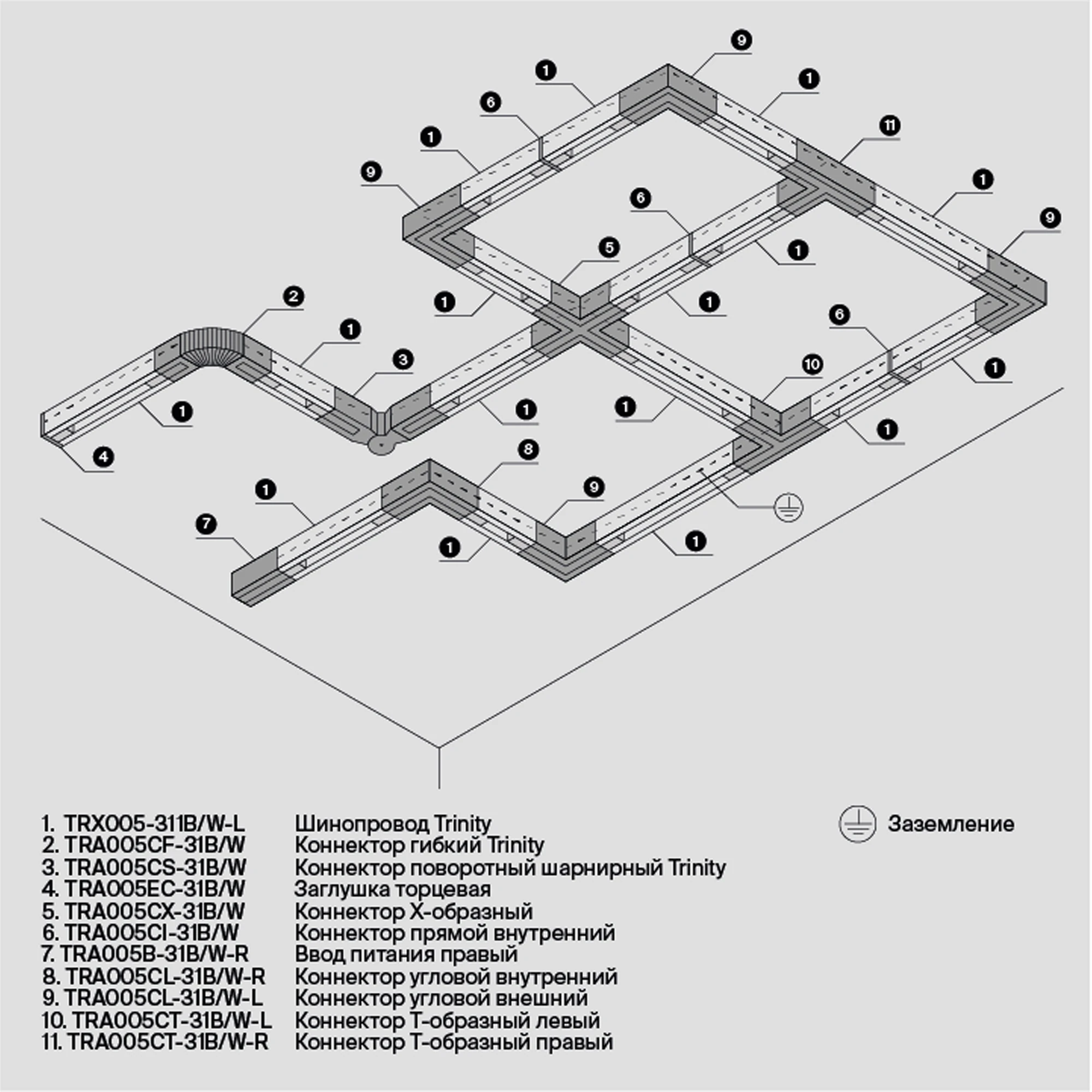 TRA005CX-31B светильник трехфазная трековая система TRINITY 0K IP 20 пластик черный